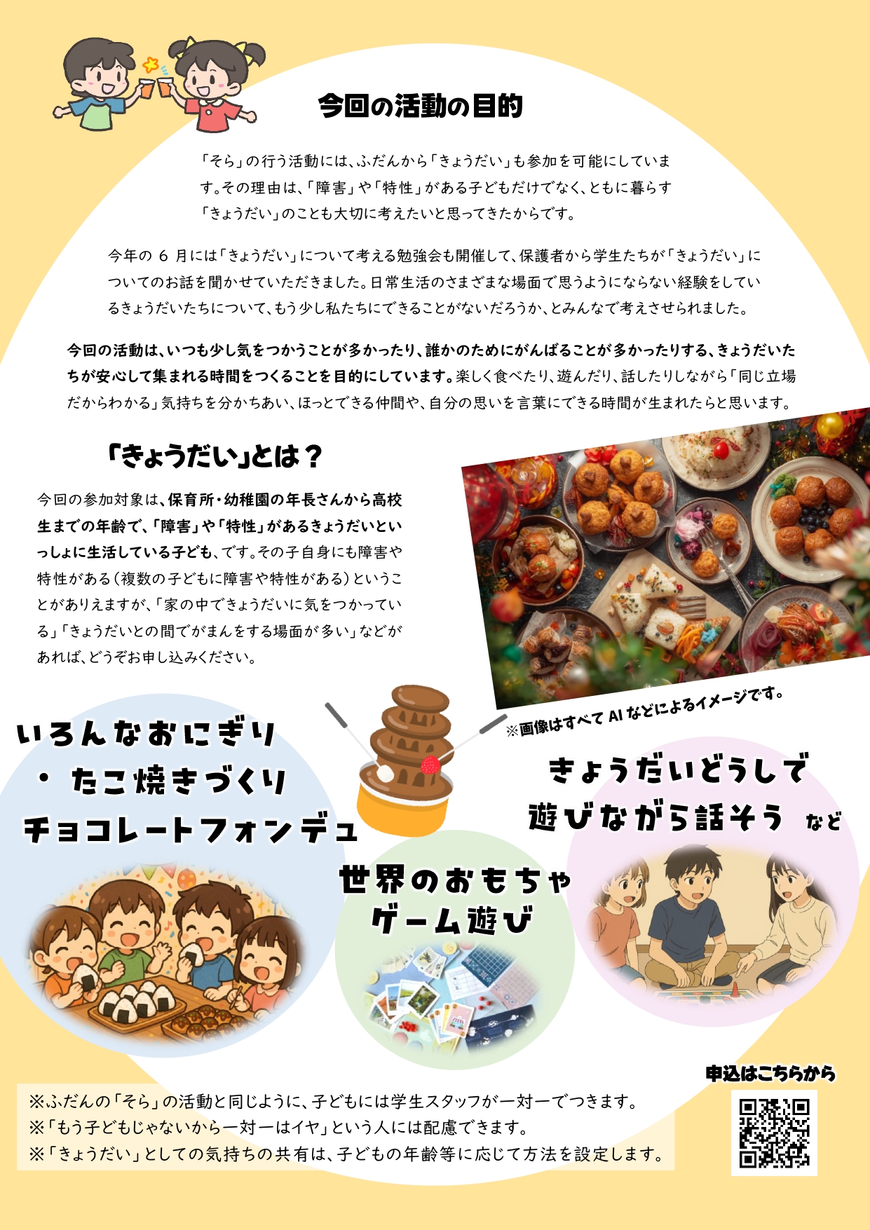 発達に特性や障害をもつ子どもの「きょうだい」向けに行う活動のご案内です。