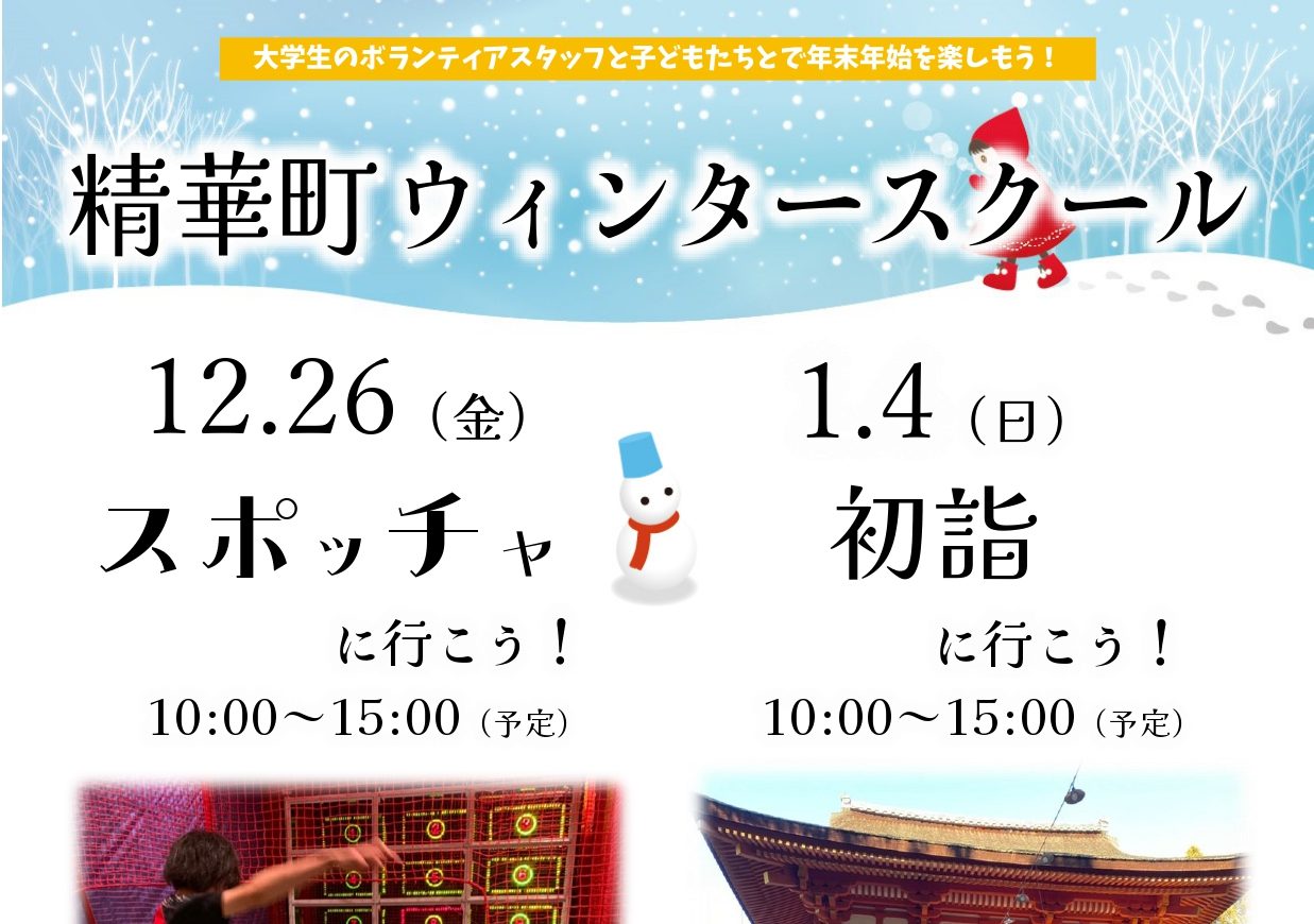 ご案内が少し遅くなってしまいましたが、精華町ウィンタースクールの参加者を募集開始します!